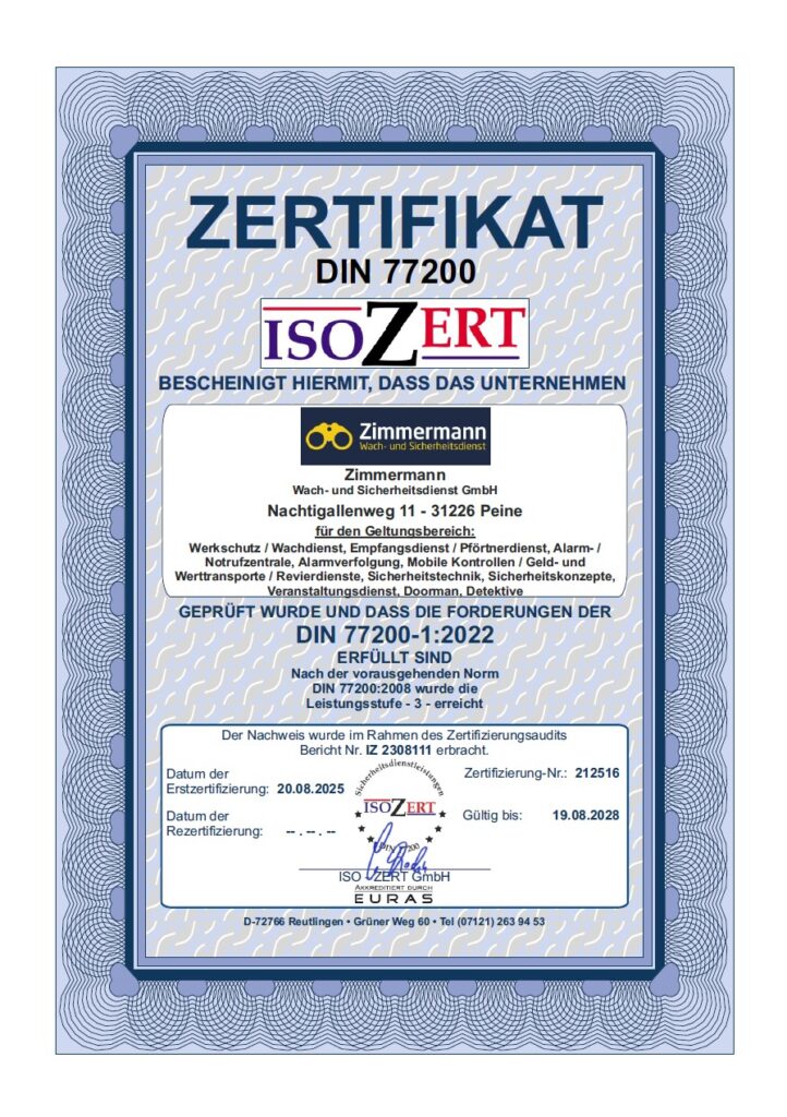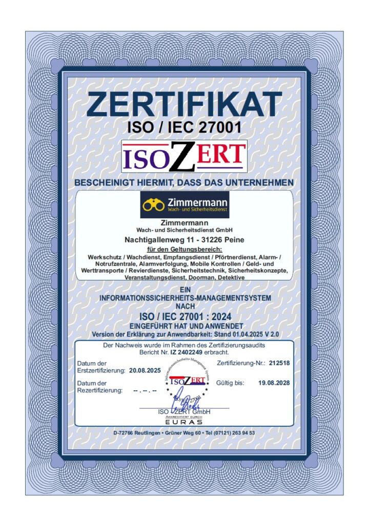 Durch anerkannte Zertifikate, transparente Kommunikation und verbindliches Handeln tragen wir Tag für Tag dazu bei, ein sicheres Umfeld zu schaffen – für Unternehmen, Institutionen und Menschen in der Region Peine.